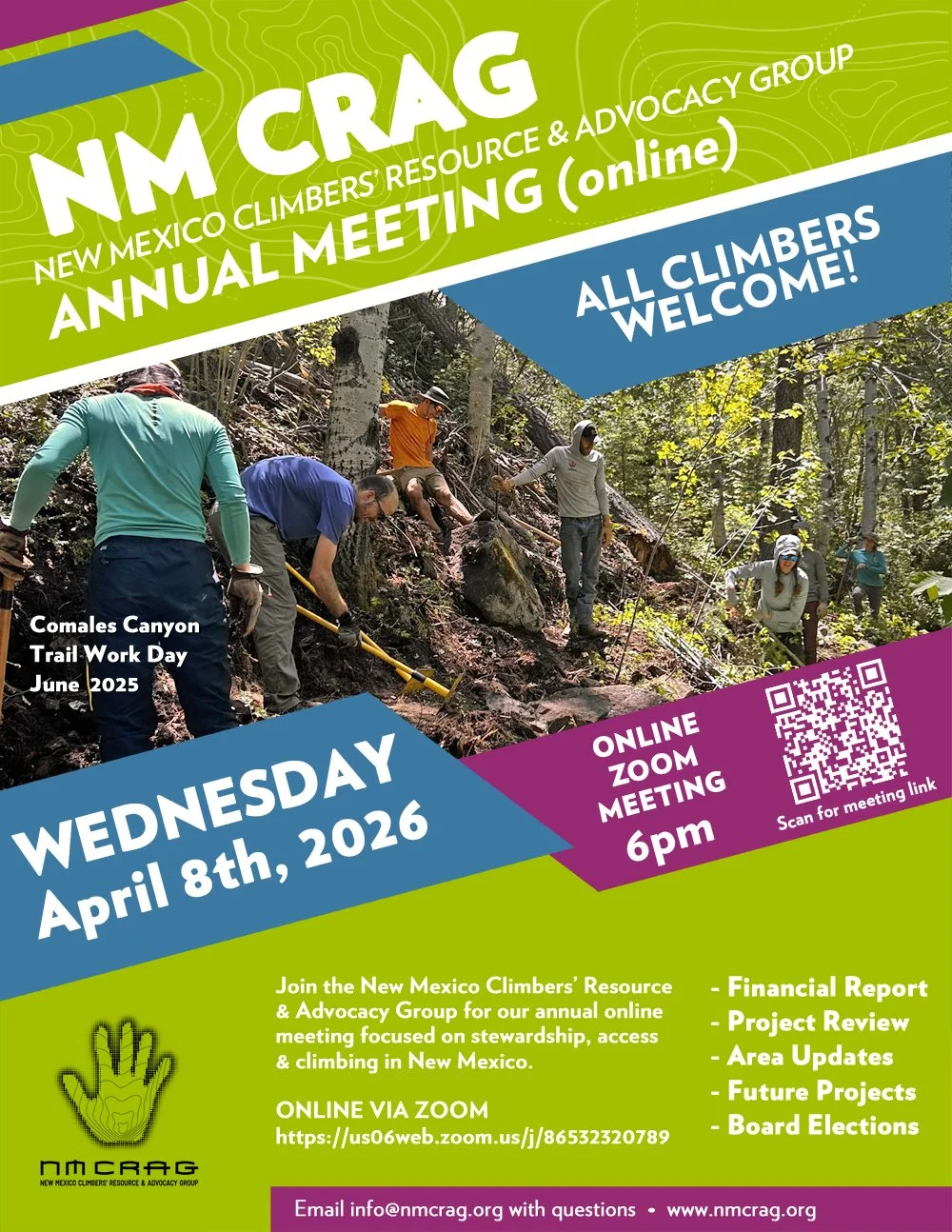 Join the New Mexico Climbers’ Resource & Advocacy Group for our annual online meeting focused on stewardship, access & climbing in New Mexico.